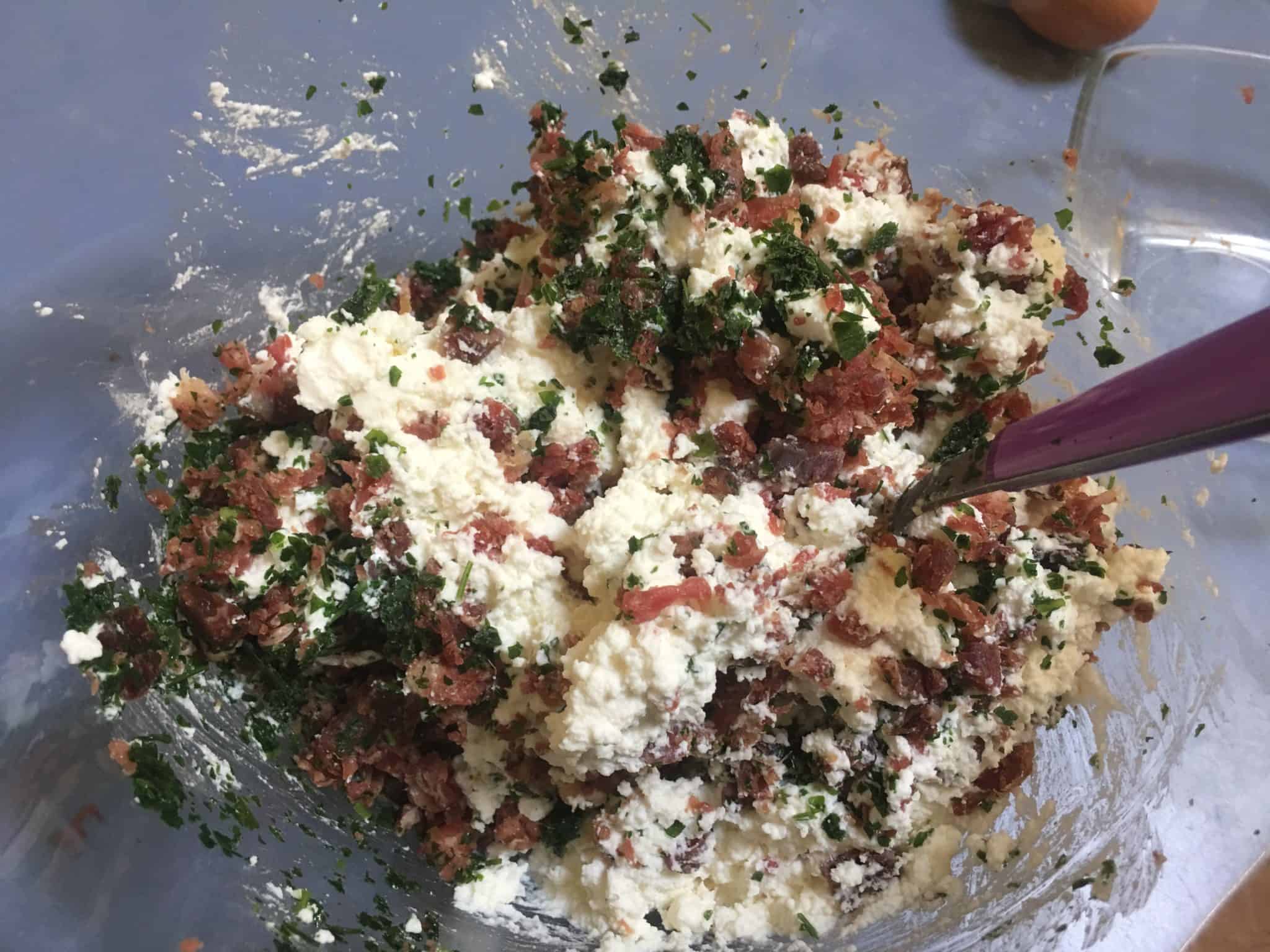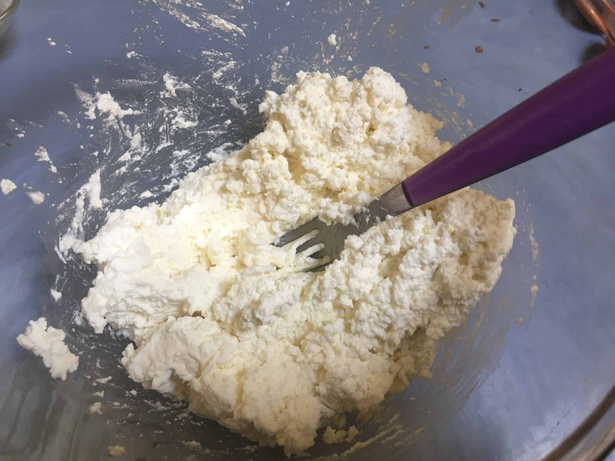 Nel frattempo prepariamo il ripieno. Cominciamo stemperando la ricotta con una forchetta fino a renderla cremosa.